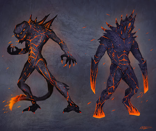 The last weeks assignment was to produce a character drawing of a rock / lava creature.